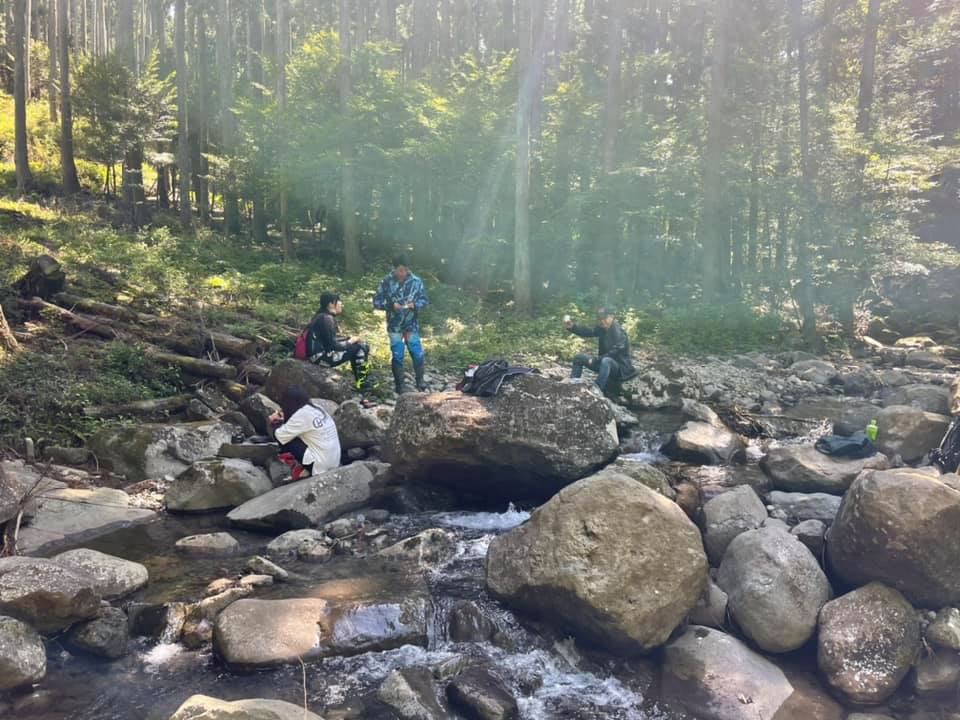 何本か林道を通過して途中の沢でお昼休憩して15時くらいにお店到着〜解散を予定しています。
